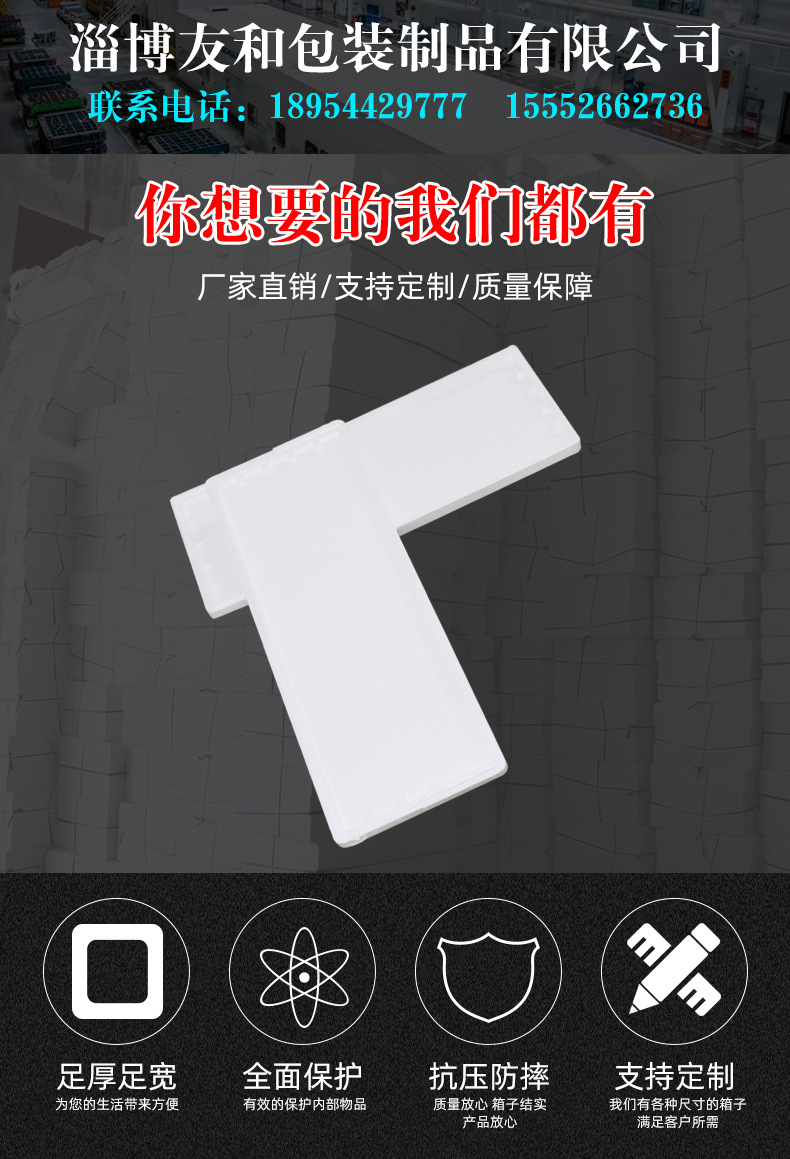 ????淄博友和包裝制品有限公司是專業的山東泡沫包裝箱加工廠家,本廠主要產品有:泡沫包裝箱,泡沫保鮮箱,水果蔬菜泡沫包裝箱,水果蔬菜泡沫保鮮箱,瓷磚泡沫包裝箱等,產品暢銷全國,深受用戶好評。泡沫包裝定做可以聯系我們網站 http://www.ccxinda.cn/ 上電話,我們會第一時間跟您聯系。