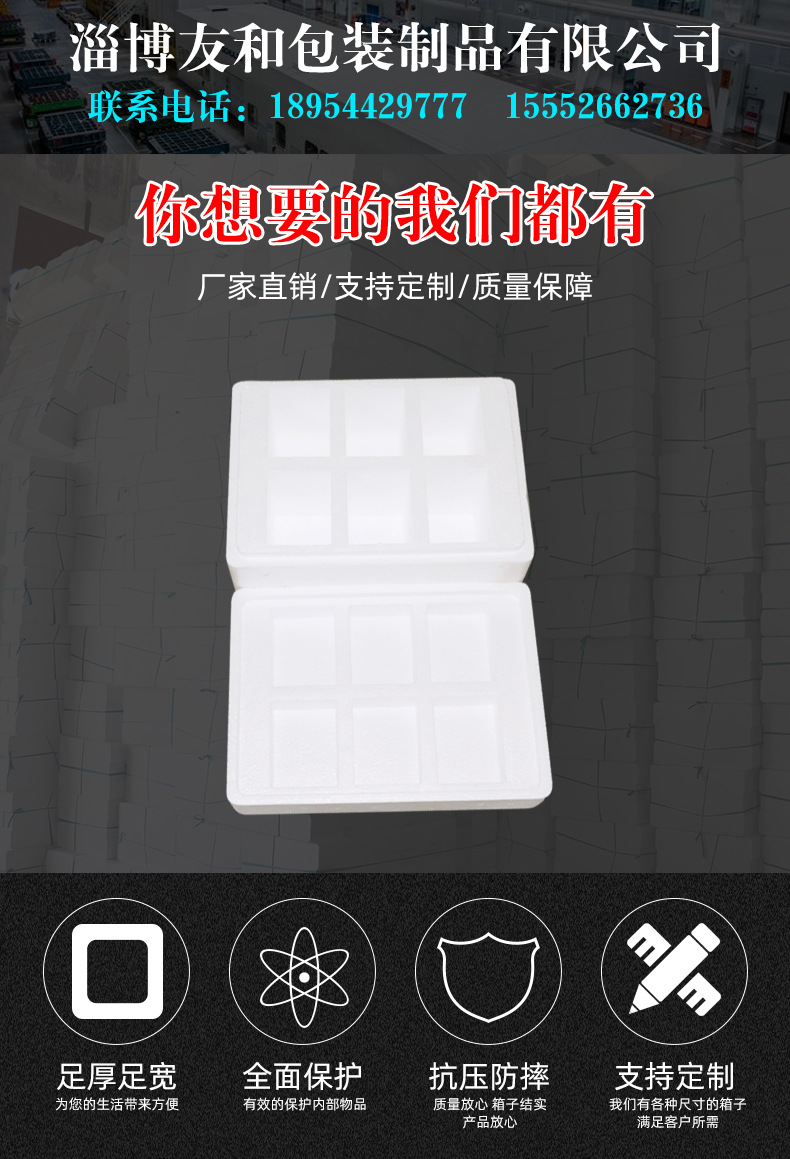 介紹參數圖冊 ????淄博友和包裝制品有限公司是專業的山東泡沫包裝箱加工廠家,本廠主要產品有:泡沫包裝箱,泡沫保鮮箱,水果蔬菜泡沫包裝箱,水果蔬菜泡沫保鮮箱,瓷磚泡沫包裝箱等,產品暢銷全國,深受用戶好評。泡沫包裝定做可以聯系我們網站 http://www.ccxinda.cn/ 上電話,我們會第一時間跟您聯系。 上一篇16孔雞蛋禮盒包裝盒 下一篇外貿包裝